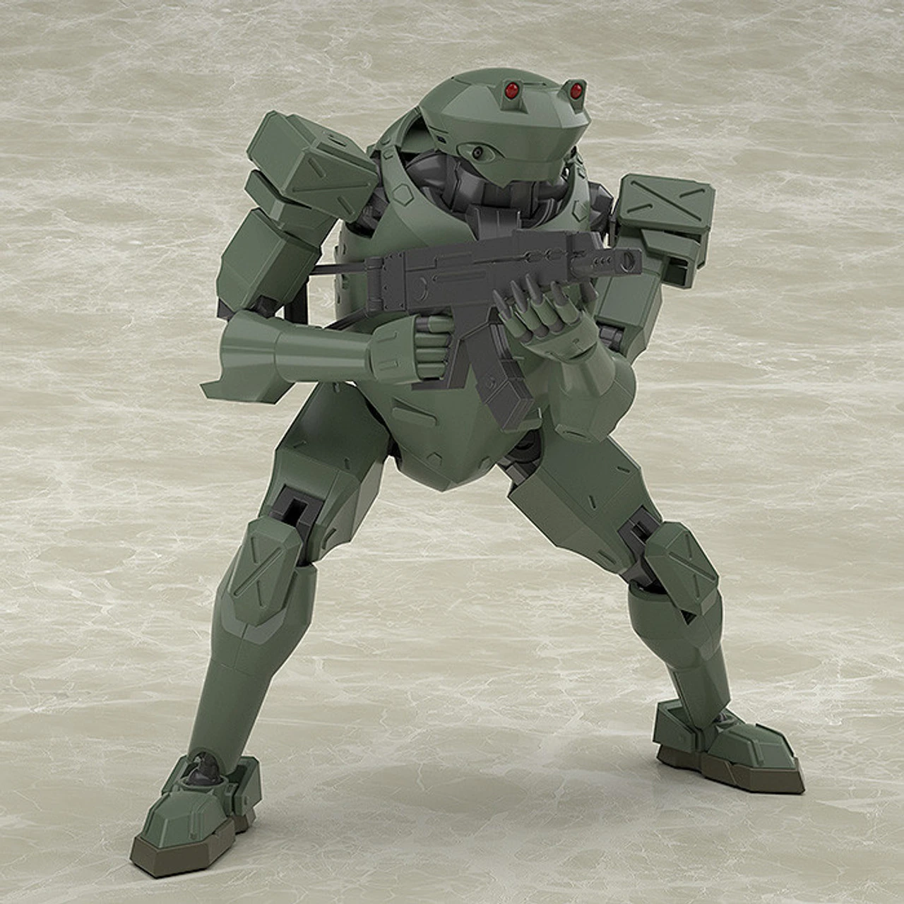 From “Full Metal Panic!” comes a plastic model kit of the the SAVAGE mecha. This time in an olive version. This kit allows you to recreate either the Rk-91 model or Rk-92 model of the mecha. The model is approximately 1/60th scale, standing approximately 130mm when upright.