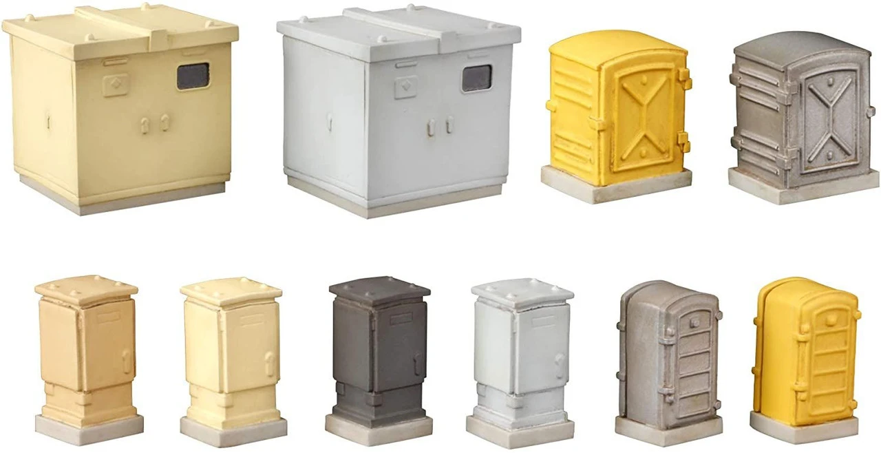 – Includes 4 new relay boxes, 2 old relay boxes, 2 cubicles, and 2 track maintenance tool boxes.